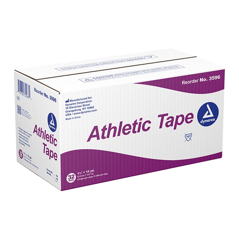 Dynarex Athletic Tape offers optimal breathability and stability, while helping to protect joints from sprains and injuries. The Athletic Tape can also be used to provide support after an injury to help promote recovery. Athletic Tape is used in physical therapy, sports medicine, and by athletic trainers, and coaches.