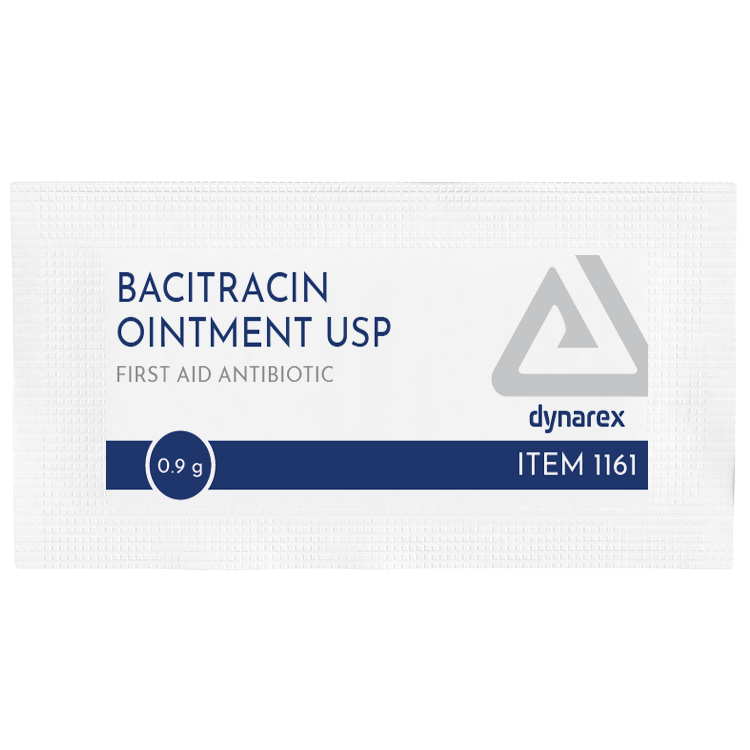 Dynarex Bacitracin Ointment USP is a topical antibiotic designed to help minimize the risk of infection in minor cuts, scrapes, and burns. This high-quality Ointment is available in convenient single-use packets for effortless kit-packing and easy-open tubes for quick application. Dynarex Bacitracin Ointment USP is ideal for a wide variety of settings including first aid and emergency, long-term care, and at home.