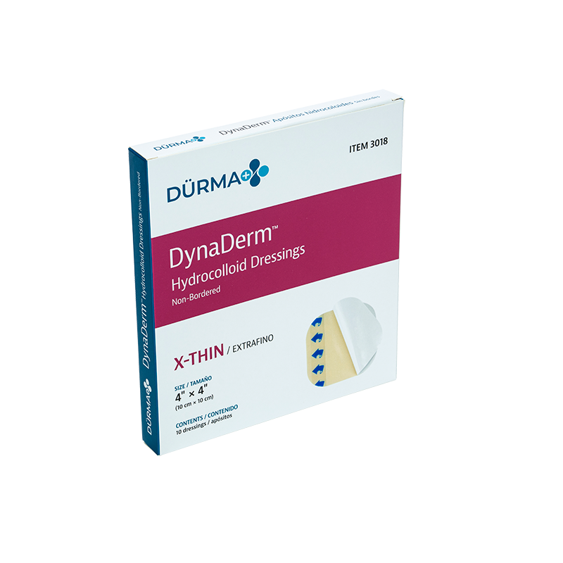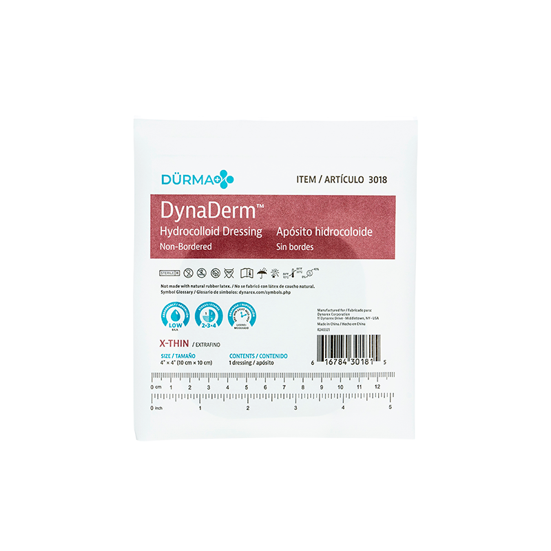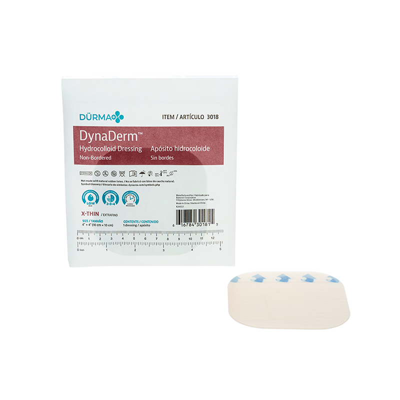 DynaDerm™ Hydrocolloid Dressings are flexible, insulated coverings designed to help shield non-infected, partial, and full-thickness wounds including pressure ulcers, abrasions, and donor sites. These semi-occlusive dressings help to accelerate the healing process by preserving moisture and promoting autolytic debridement. The Hydrocolloid Dressings’ mild adhesive surface gently adheres to surrounding skin but won’t stick to the wound bed for optimal comfort and bandage longevity. These convenient Dressings can be safely worn for several days depending on wound condition and exudate levels.