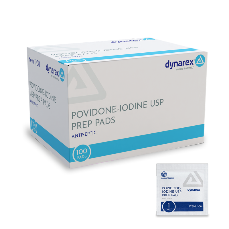 Dynarex Povidone Iodine Prep Pads are premium antiseptic pads saturated with 10% povidone iodine solution to help control bacteria and minimize the risk of infection. These Prep Pads are designed for effective cleansing and preparation of skin for medical procedures. Povidone Prep Pads are individually packaged in convenient, easy-to-tear pouches. Ideal for use with a variety of procedures, including venipuncture, IV starts, renal dialysis, and pre-op prepping.